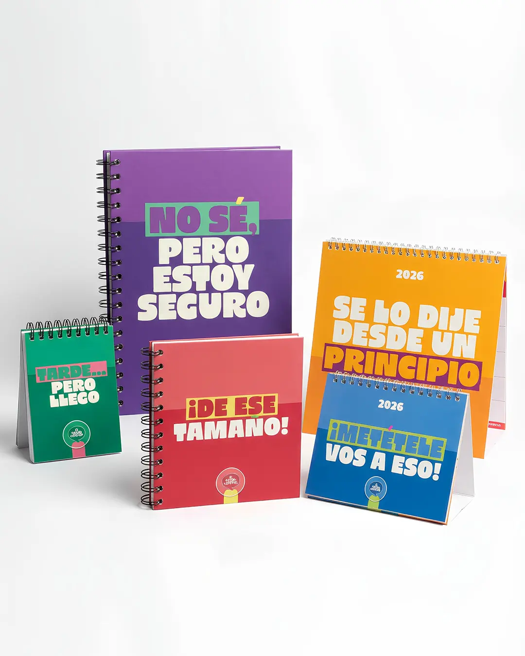 Kit oficial de La Tienda Creativa inspirado en las frases de la famosa valla. Incluye toda la colección de cuadernos, libretas y calendarios.
